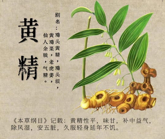 出处:《本草纲目》记载:"黄精性平,甘润,宜配红枣,助养脾胃,调气血。"